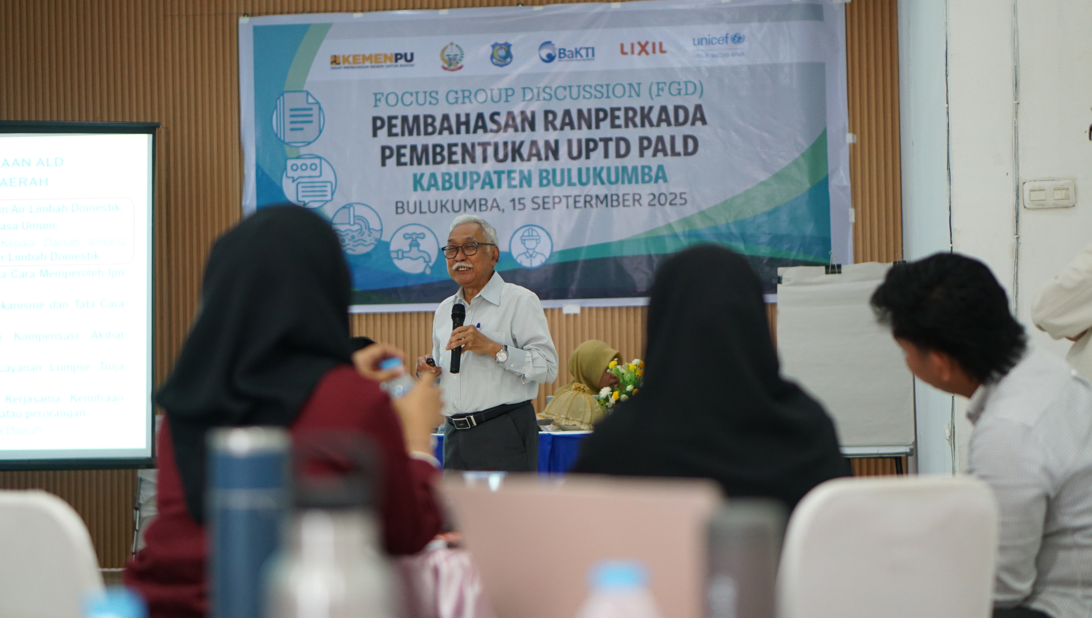 Kegiatan awal yang dilaksanakan yakni diskusi kelompok terarah atau FGD tentang Rancangan Peraturan Kepala Daerah (Ranperkada) pembentukan UPTD PALD, berlangsung 15 September di hotel Agri Bulukumba. Sebanyak 26 orang (15 perempuan; 11 laki-laki) stakeholder kunci yang terlibat berasal dari BPBPK Sulawesi Selatan, BAPPERIDA, pemerintah daerah dari Bagian Hukum dan Bagian ORTALA, Dinas PUTR, Dinas Lingkungan Hidup, Dinas Kesehatan dan Dinas Pendidikan.