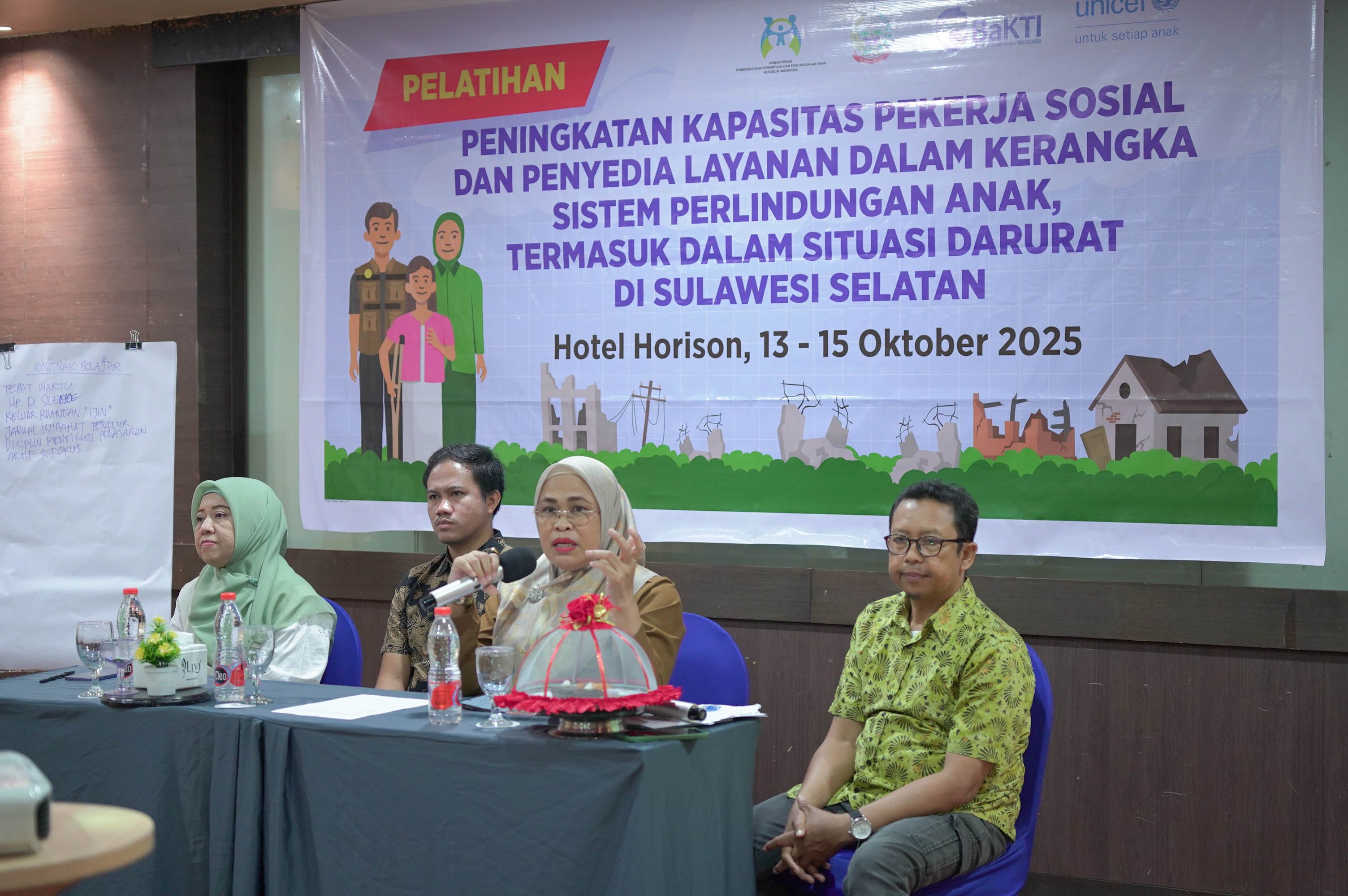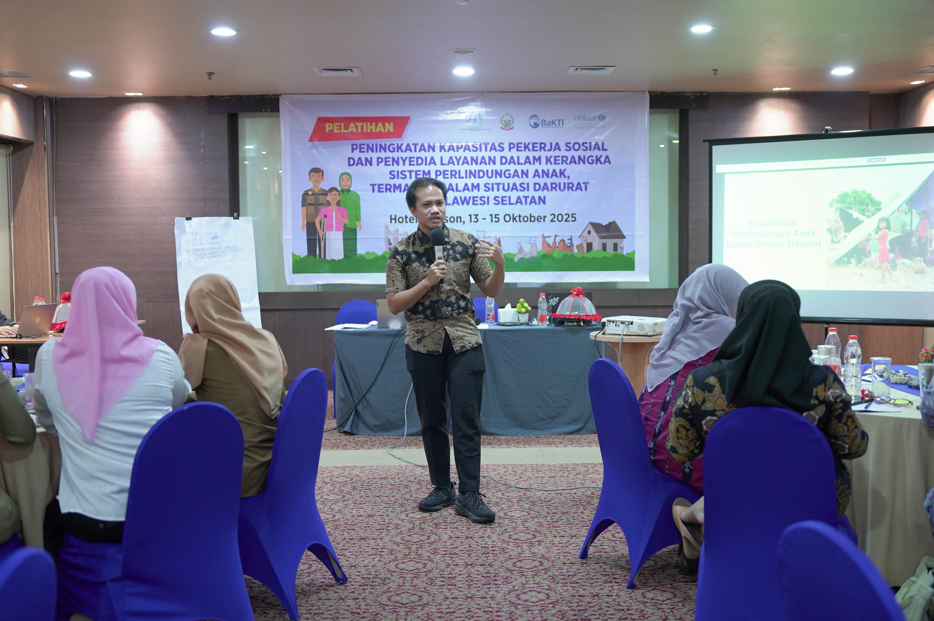 Anak-anak merupakan kelompok yang paling rentan saat bencana terjadi. Mereka berisiko kehilangan pengasuh, terpisah dari keluarga, serta menghadapi ancaman kekerasan dan eksploitasi. Untuk memperkuat kesiapsiagaan daerah menghadapi situasi darurat yang berdampak pada anak, UNICEF Indonesia bekerja sama dengan Yayasan BaKTI, Kementerian Pemberdayaan Perempuan dan Perlindungan Anak (KemenPPPA), serta Pemerintah Provinsi Sulawesi Selatan, menyelenggarakan Pelatihan Perlindungan Anak dalam Situasi Darurat (Child Protection in Emergency/CPIE) pada 13 Oktober 2025 di Hotel Horison Makassar.