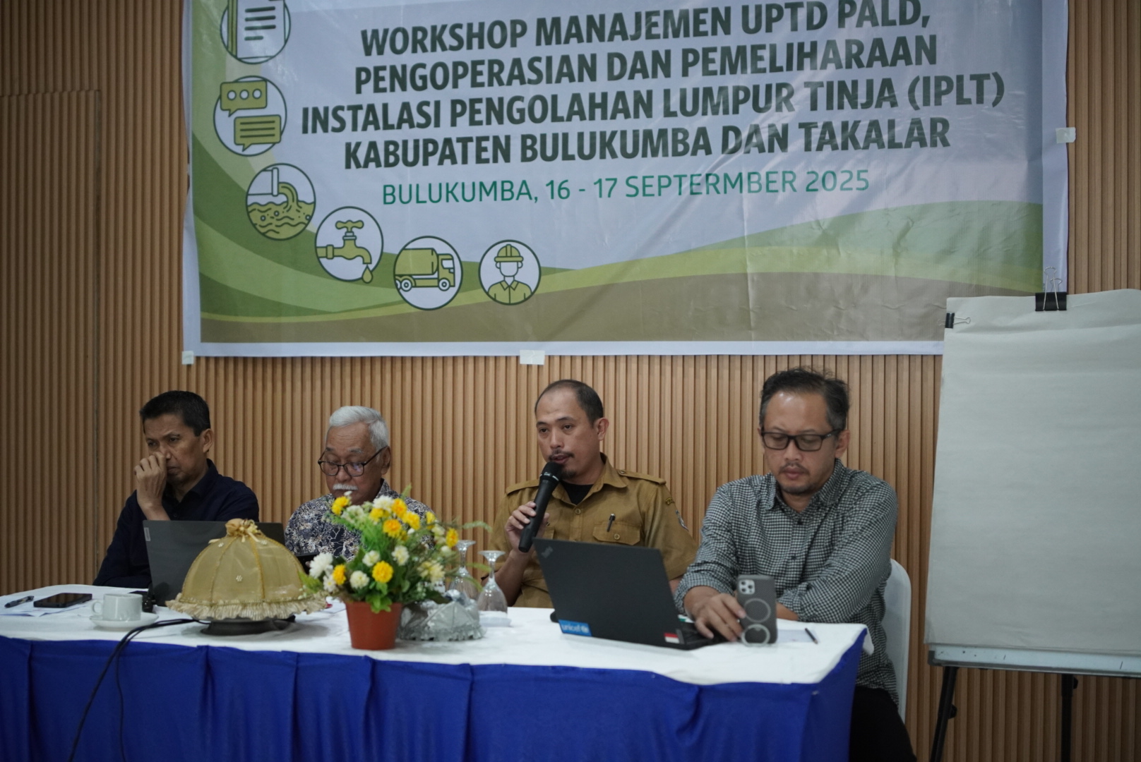 Kegiatan kedua yang dilaksanakan yakni workshop tata kelola UPTD PALD Bulukumba, digelar selama dua hari 16-17 September di hotel Agri Bulukumba. Workshop bertujuan untuk memfasilitasi stakeholder PALD menyiapkan perangkat teknis yang mendukung pengelolaan UPT PALD yang mencakup, antara lain Standard Operating Procedure (SOP) administrasi, SOP teknis yang sesuai kebutuhan dan kondisi eksisting dan rencana program layanan limbah domestik.
